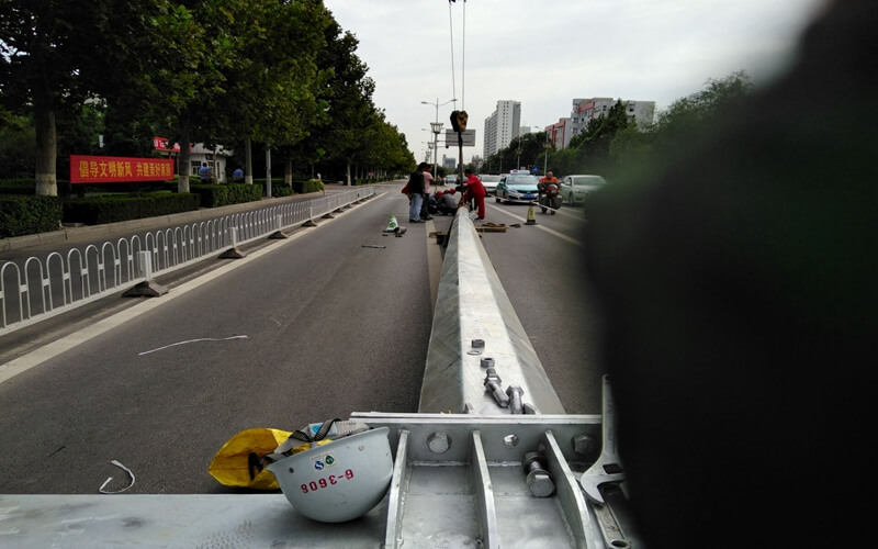 任丘市華北油田18米,20米,23米監控桿安裝現場